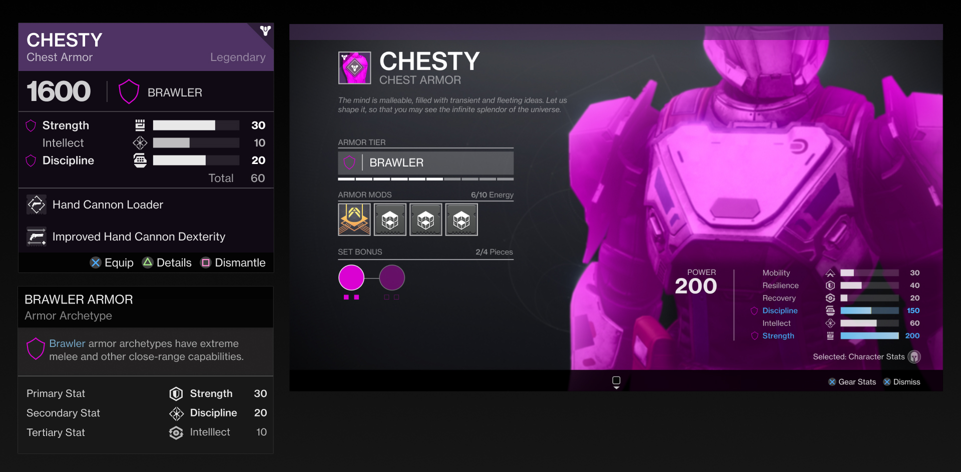 統計效果將不再分層,並且上限為 200,101 之後的任何內容都會提供額外的強大效果。傳奇盔甲將具有統計原型,例如下面模型中的“Brawler”原型。